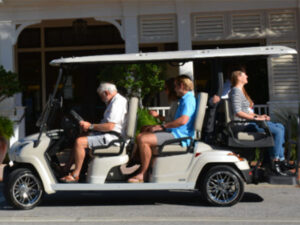Booking a golf cart for same-day pickup is an easy process thanks to our new partnership with Journee, who provide us Star golf carts in 4 passenger and 6 passenger models. As street legal low speed vehicles (LSVs), Star carts have all safety features necessary for road use, including headlights, taillights, brake lights, turn signals, horn, side mirrors, and seat belts. They also have registration, a license plate, and a title. Street legal LSVs can travel on roads that have a posted speed limit of 35mph or less, but can cross over roads with a higher speed limit, such as US-1.