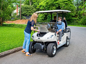 When you book a rental using our Journee system, you can select which dates you’d like to rent, and if you want to pick up or have the cart delivered. You can also visit one of our store locations, listed on our website, to see the cart in person, and there will be a QR code sticker on it that you can scan with your phone. Once scanned, there will be a few more steps, such as payment and license verification (you must be at least 25 to drive a golf cart in the state of Florida), and in just a few minutes, once everything is finalized, the cart will unlock and be ready to drive.